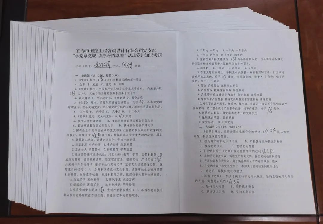 課后,支部全體黨員(含預備黨員)及入黨積極分子就三月份“學黨章黨規讀原著悟原理”專題學習月活動進行了黨建知識測試。