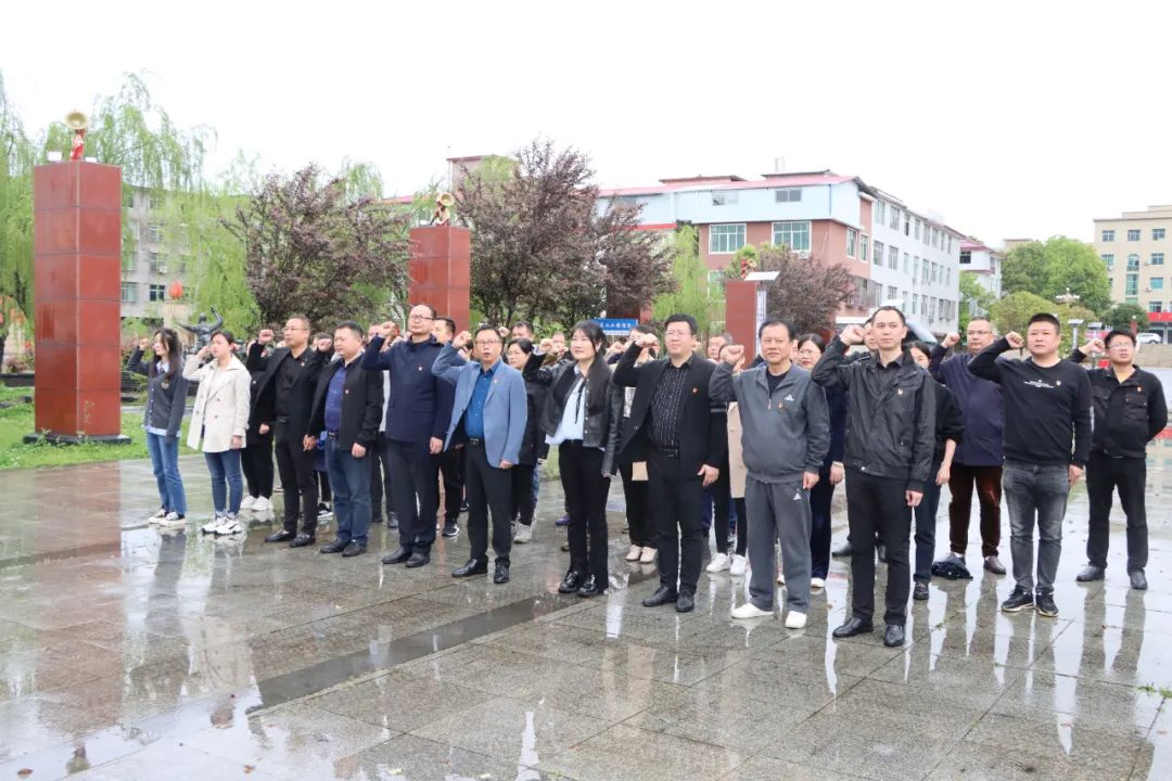 面對鮮紅的黨旗,全體黨員莊嚴宣誓,重溫入黨誓詞,鏗鏘有力的誓言激勵著全體黨員不忘初心、砥礪奮進。隨后,大家依次瞻仰革命烈士紀念碑,表達對革命先烈的深切緬懷和崇高敬意。
