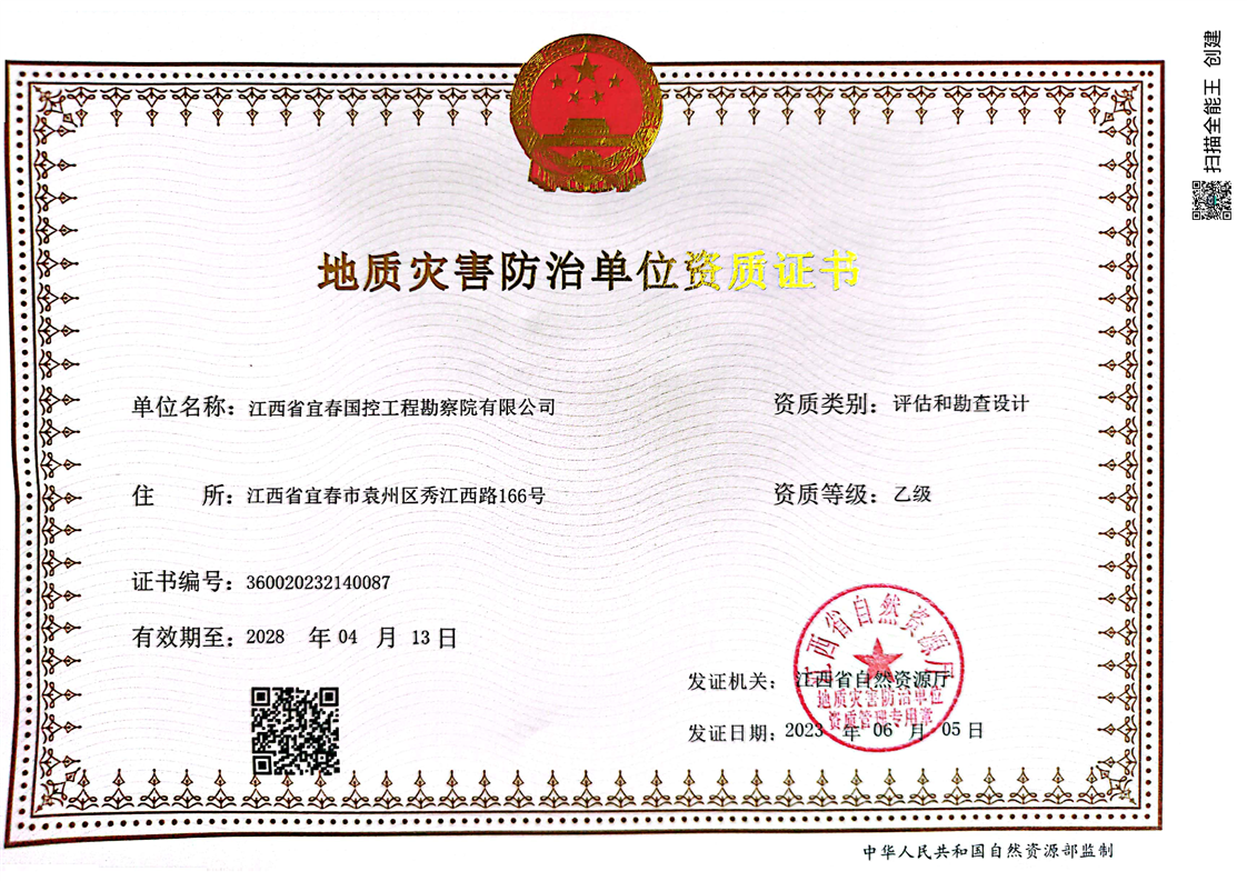 首頁 / 專題專欄 / 企業資質 / 江西省宜春國控工程勘察院有限公司