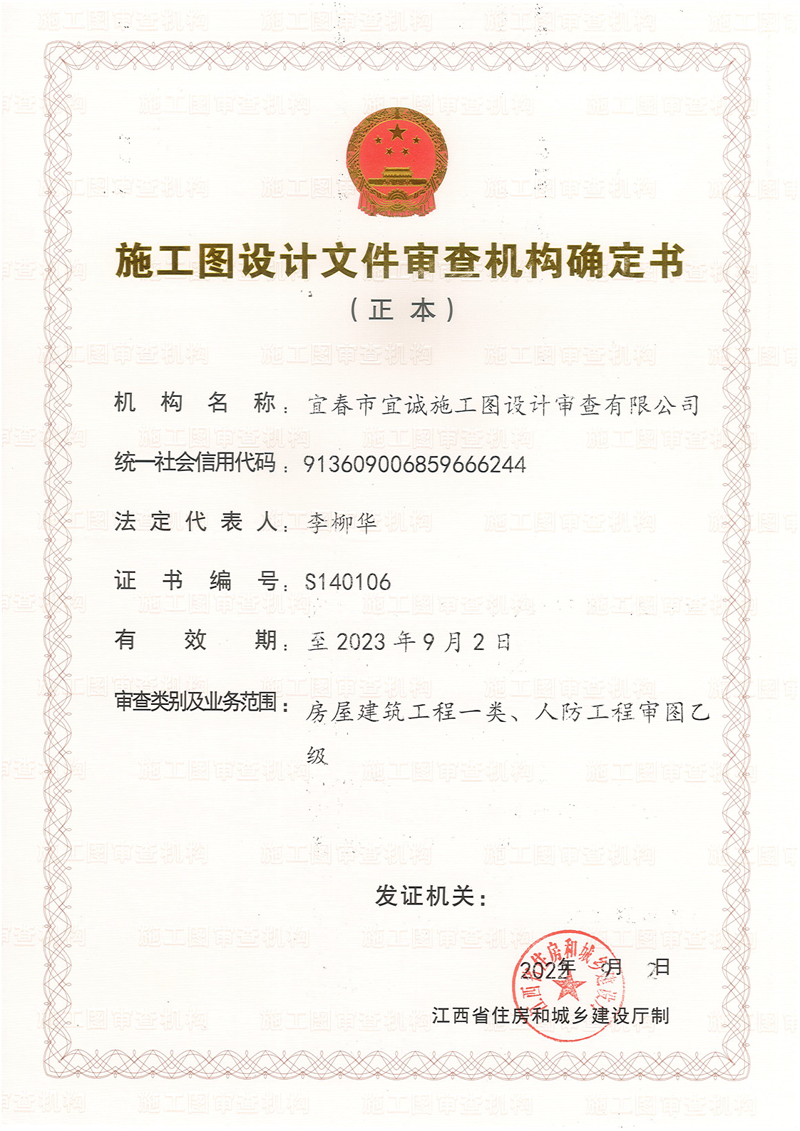 首頁 / 專題專欄 / 企業資質 / 宜春市宜誠施工圖設計審查有限公司