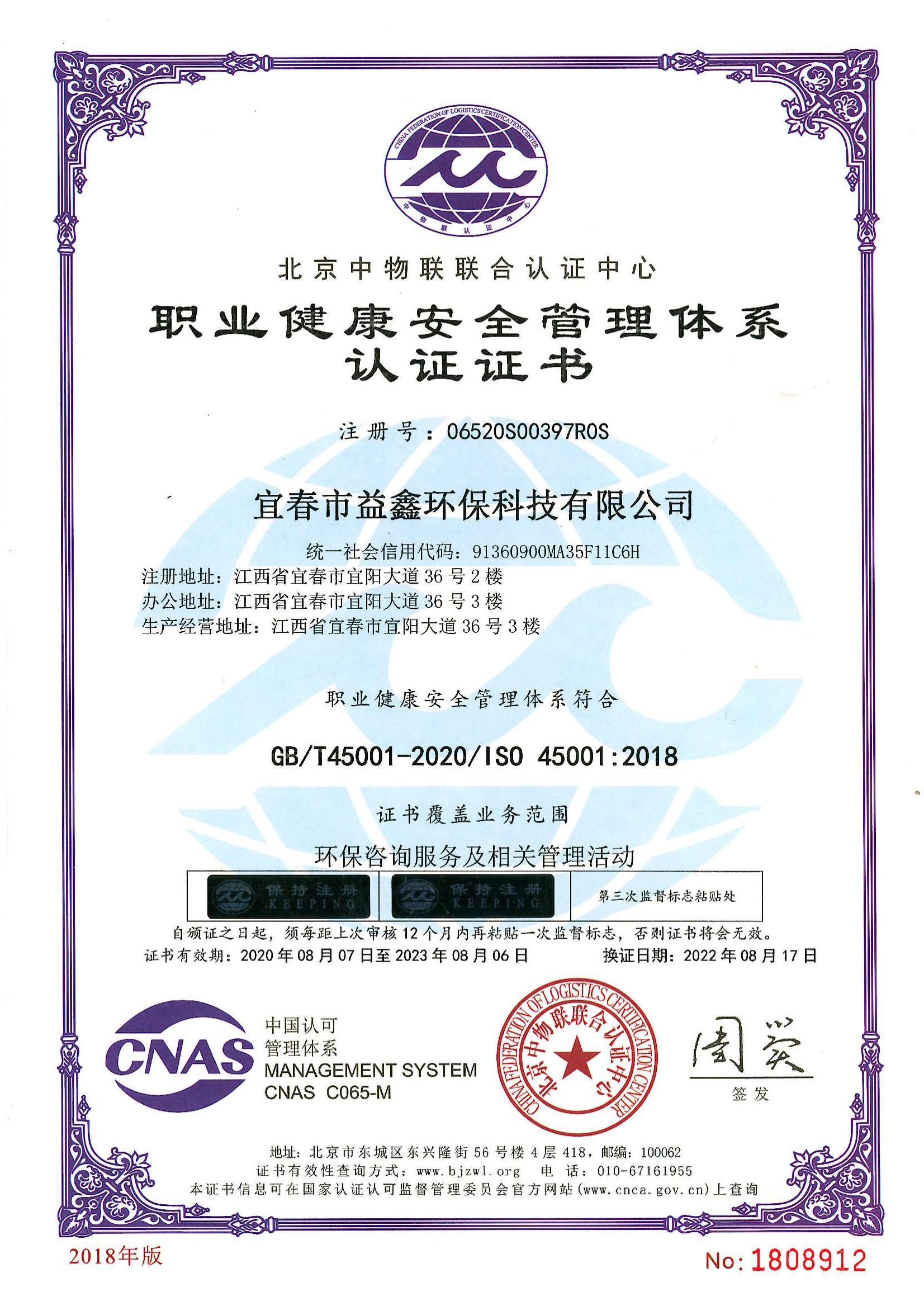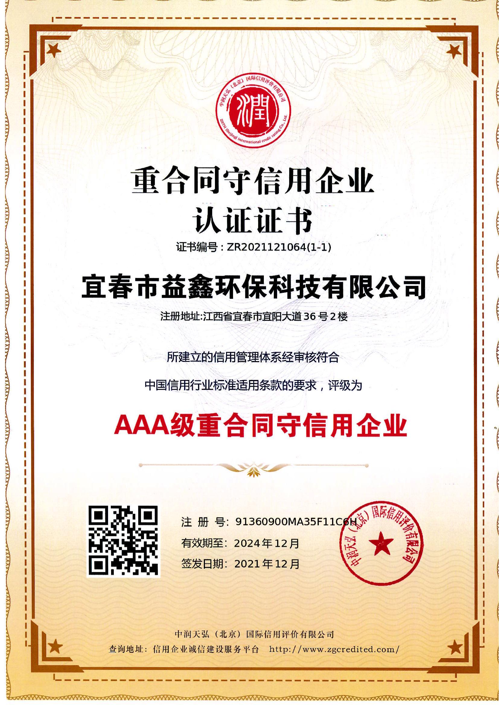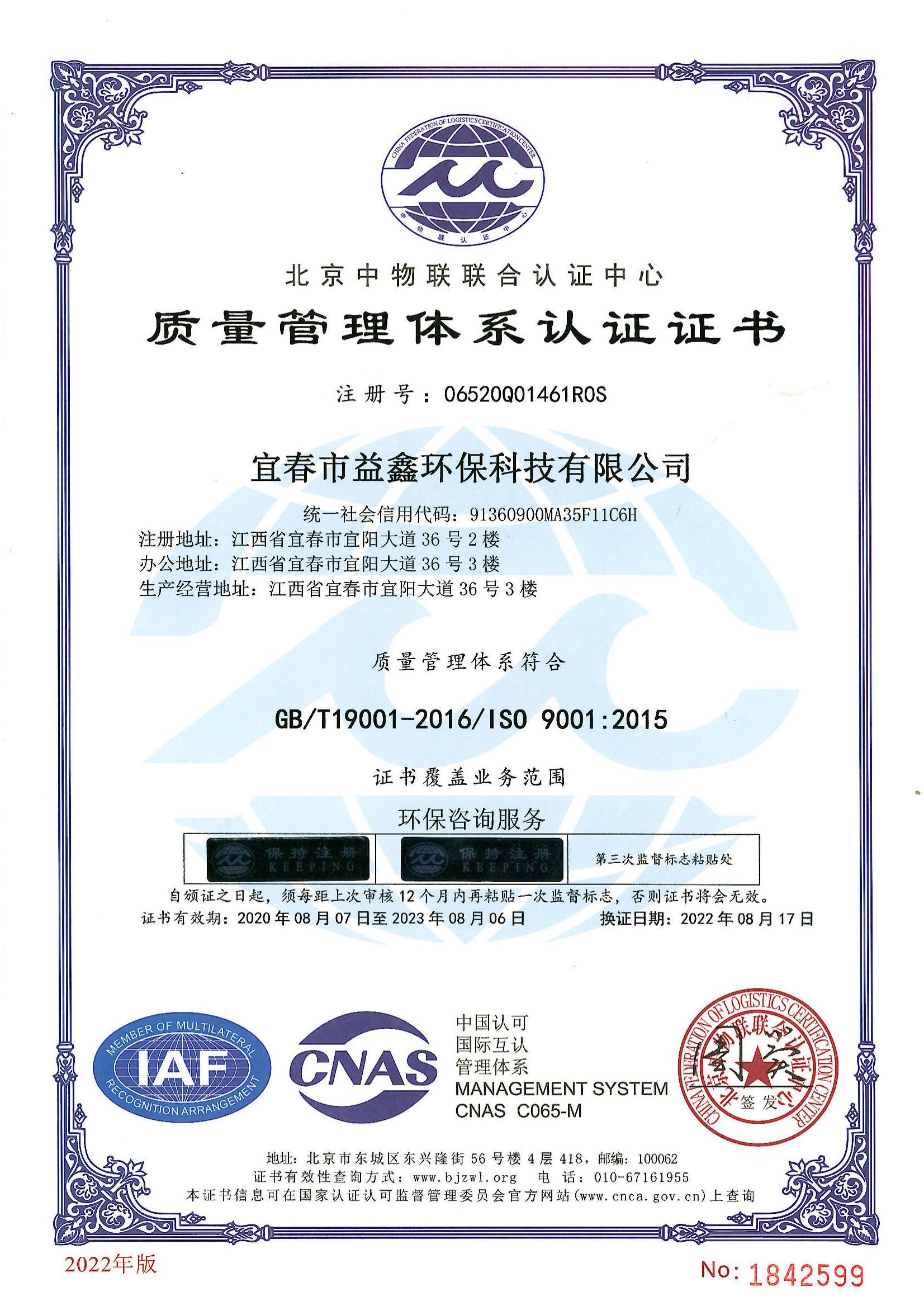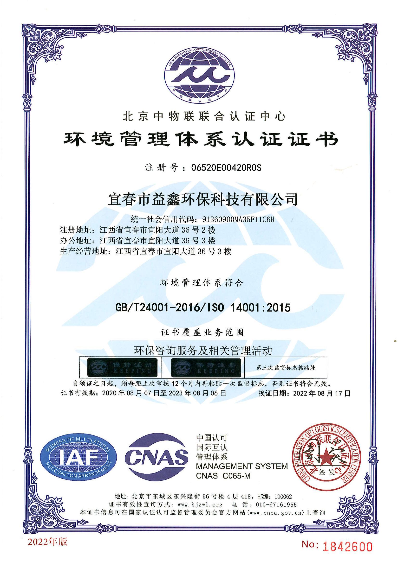 首頁 / 專題專欄 / 企業資質 / 宜春市益鑫環保科技有限公司
