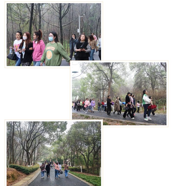 女職工們身著輕便的運動裝、運動鞋,個個精神抖擻,從全民健身步道環繞森林公園,大家一邊感受著沿途的明媚春光,一邊交流著工作與生活。一路上歡聲笑語、昂首闊步前行,在友好的氛圍中你追我趕、相互照拂,感受著健步走活動帶來的歡樂。經過近一小時的健步走,全體成員順利到達了終點。